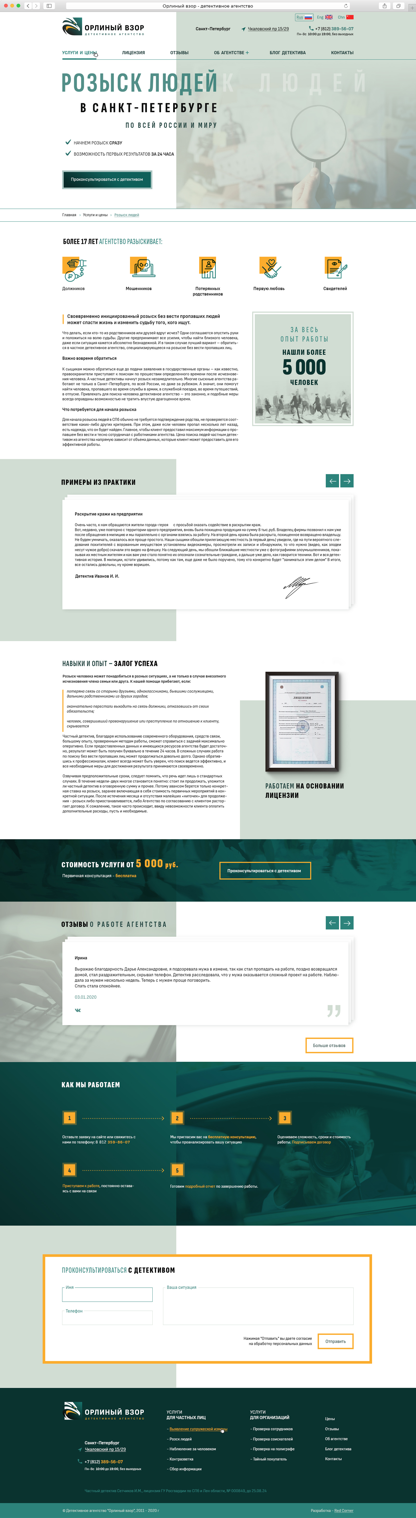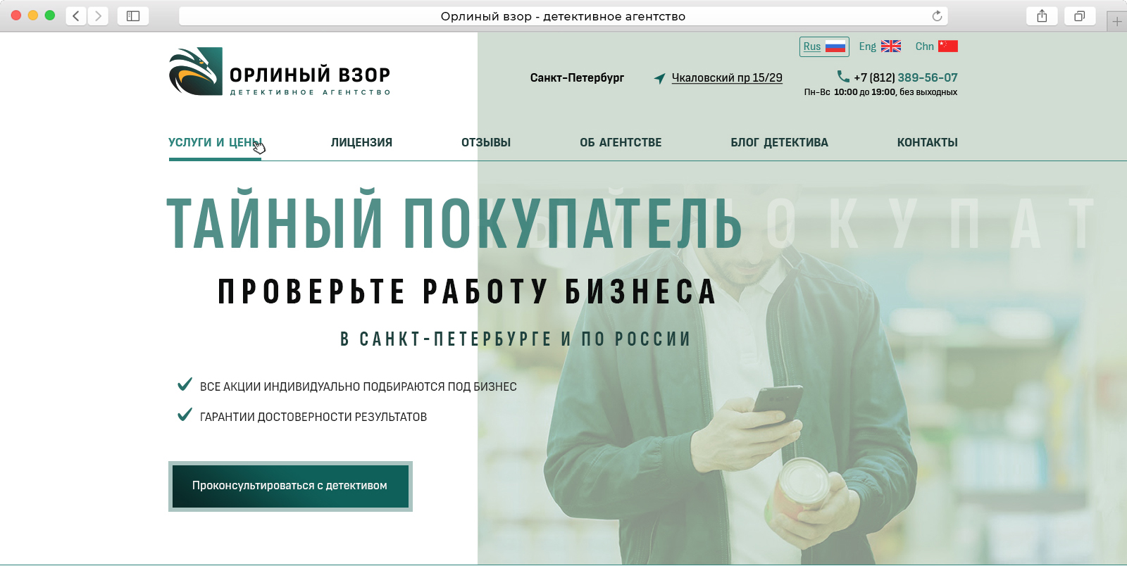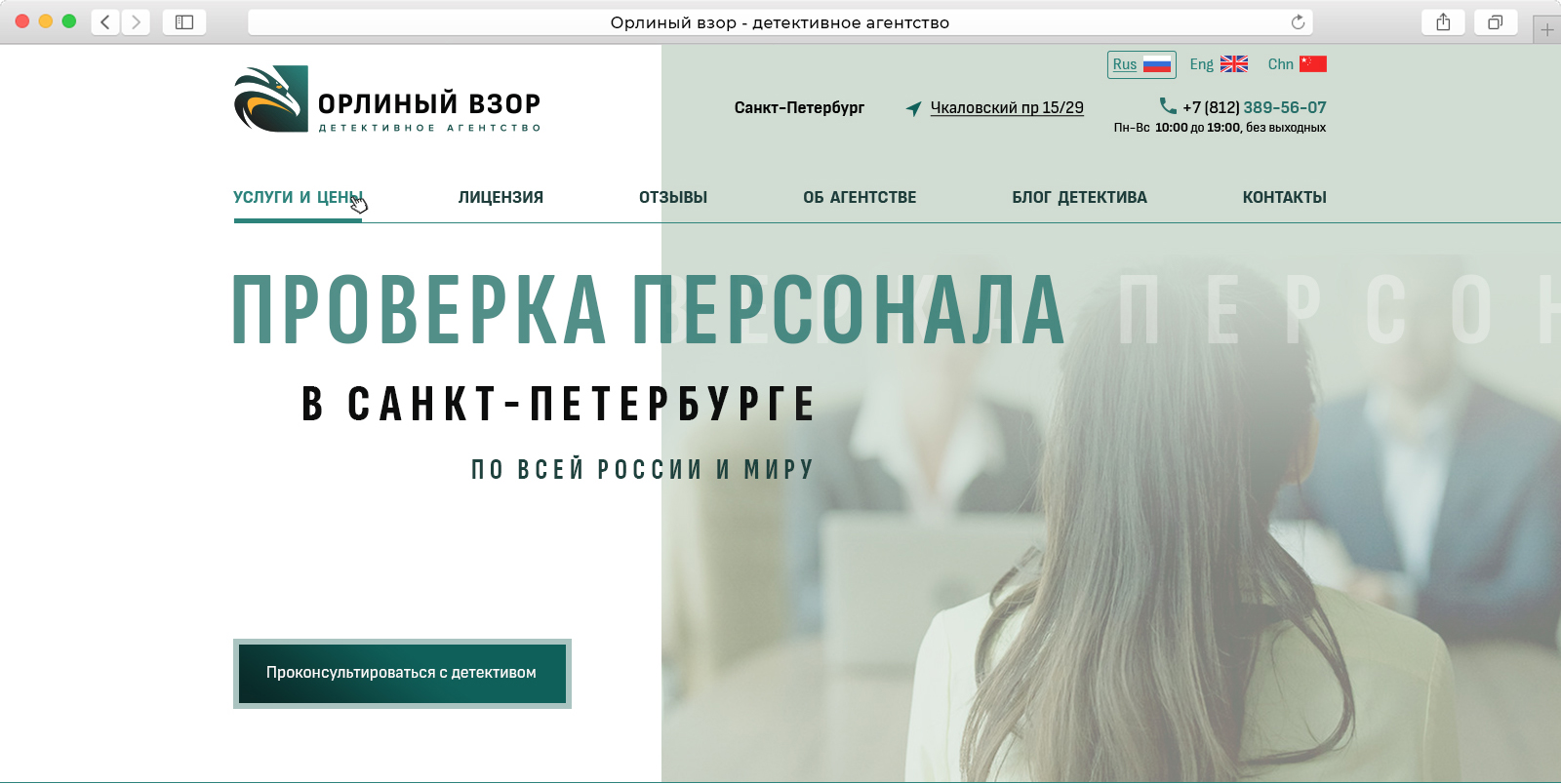 Детективное агентство Орлиный Взор работает с 2006 года. Агентство выполняет услуги в РФ и по всему миру, аккредитовано и признано российскими и мировыми ассоциациями детективов (и такие есть :) )