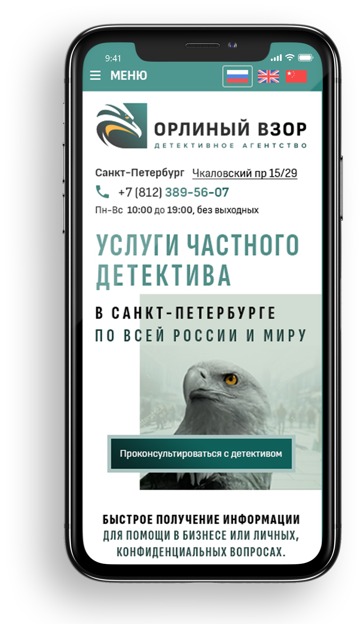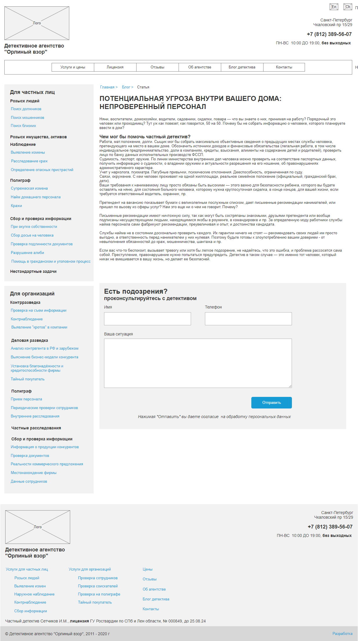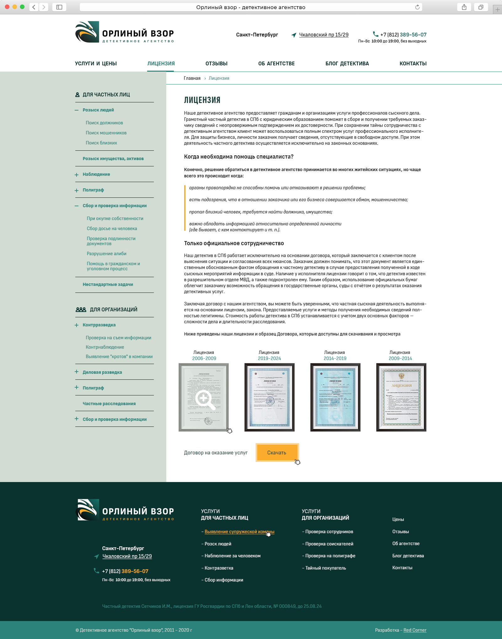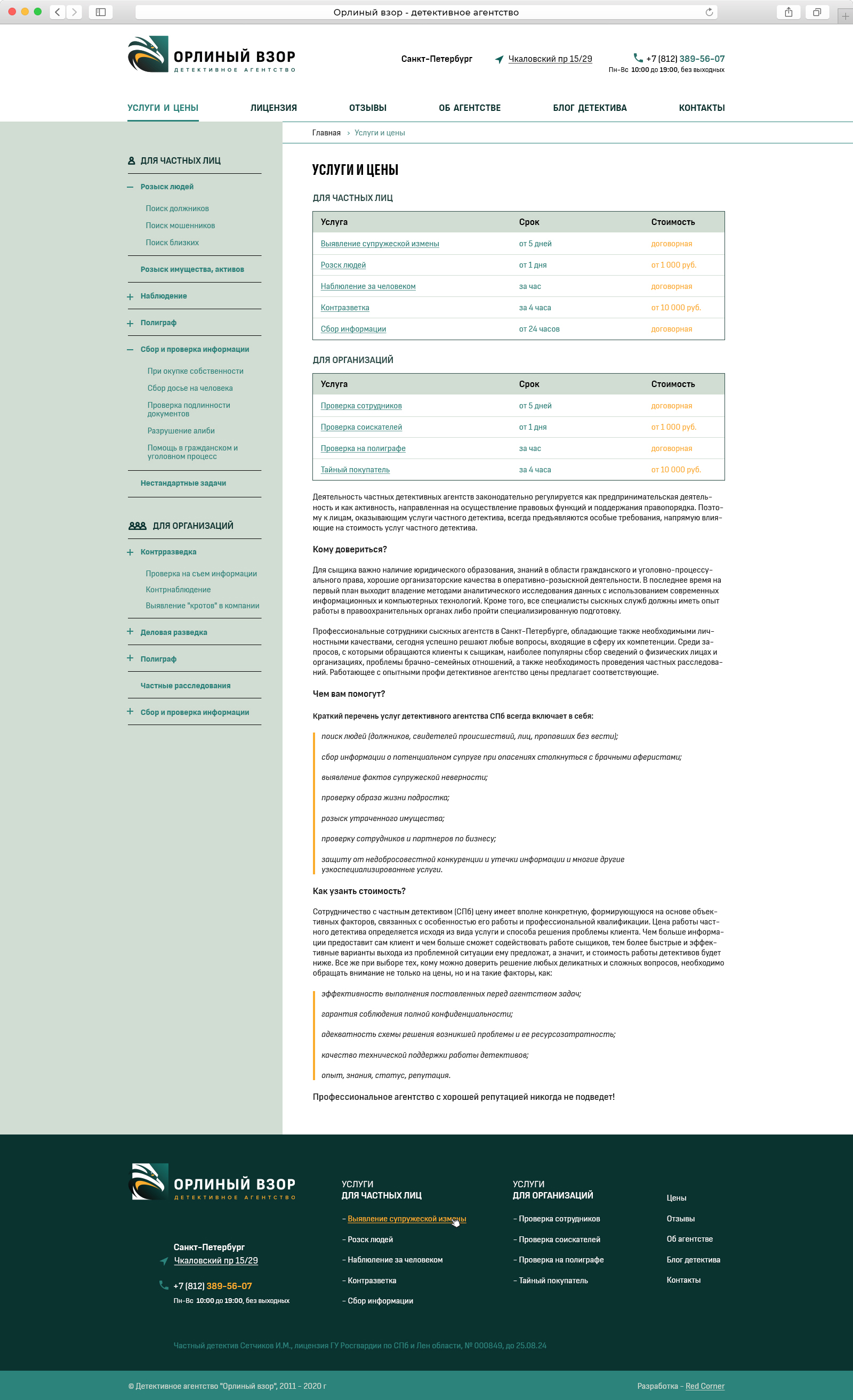 Детективное агентство Орлиный Взор работает с 2006 года. Агентство выполняет услуги в РФ и по всему миру, аккредитовано и признано российскими и мировыми ассоциациями детективов (и такие есть :) )