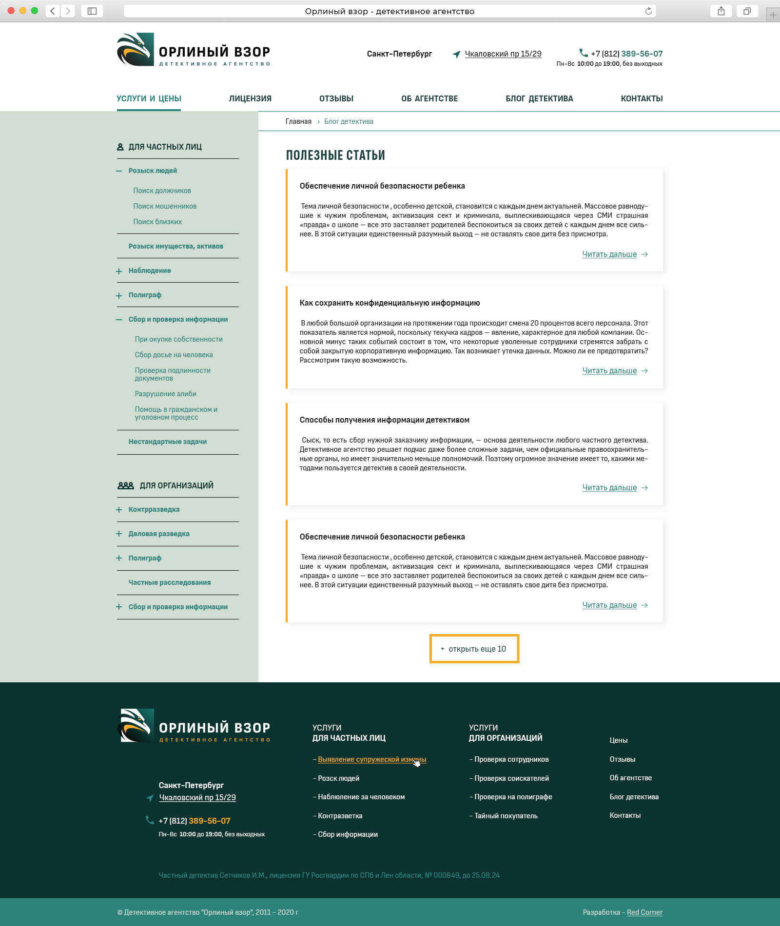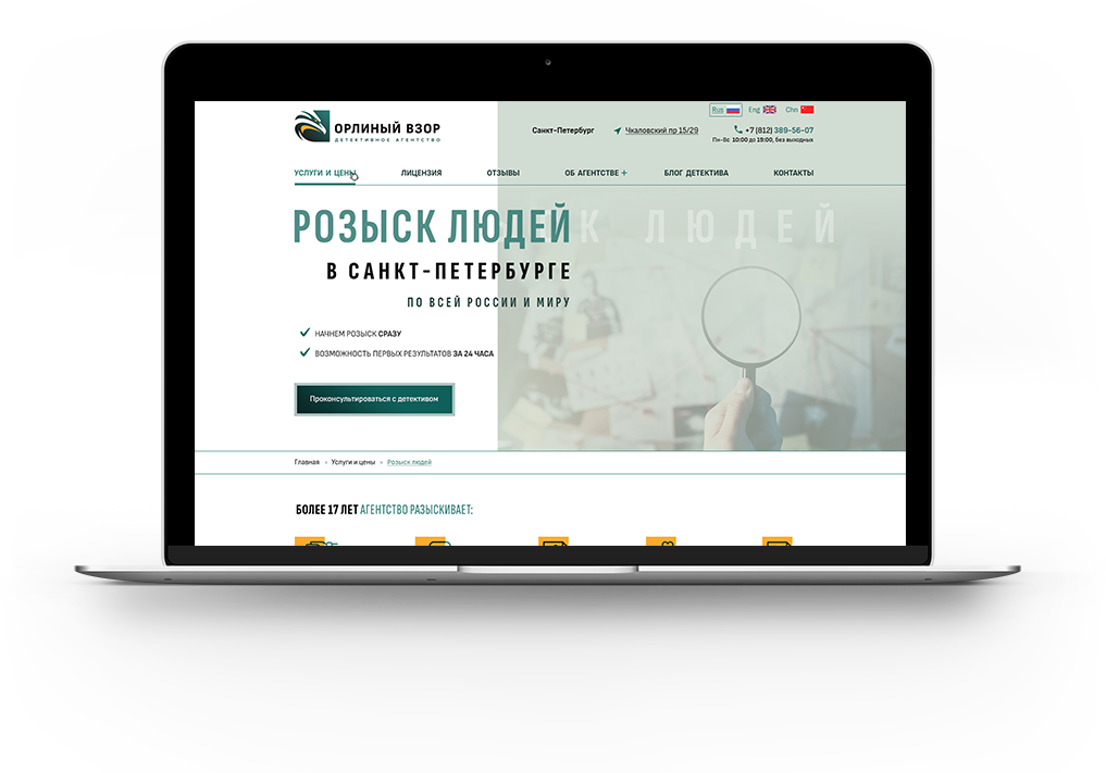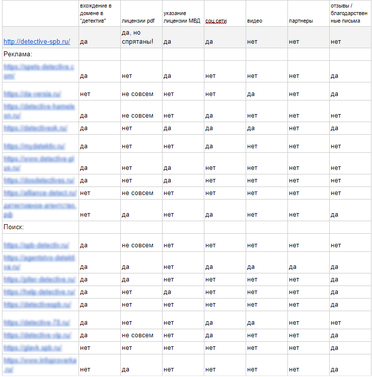 Для детективного агентства Орлиный Взор мы проанализировали 20 конкурентов в рекламе и поисковой выдачи по 15 факторам.