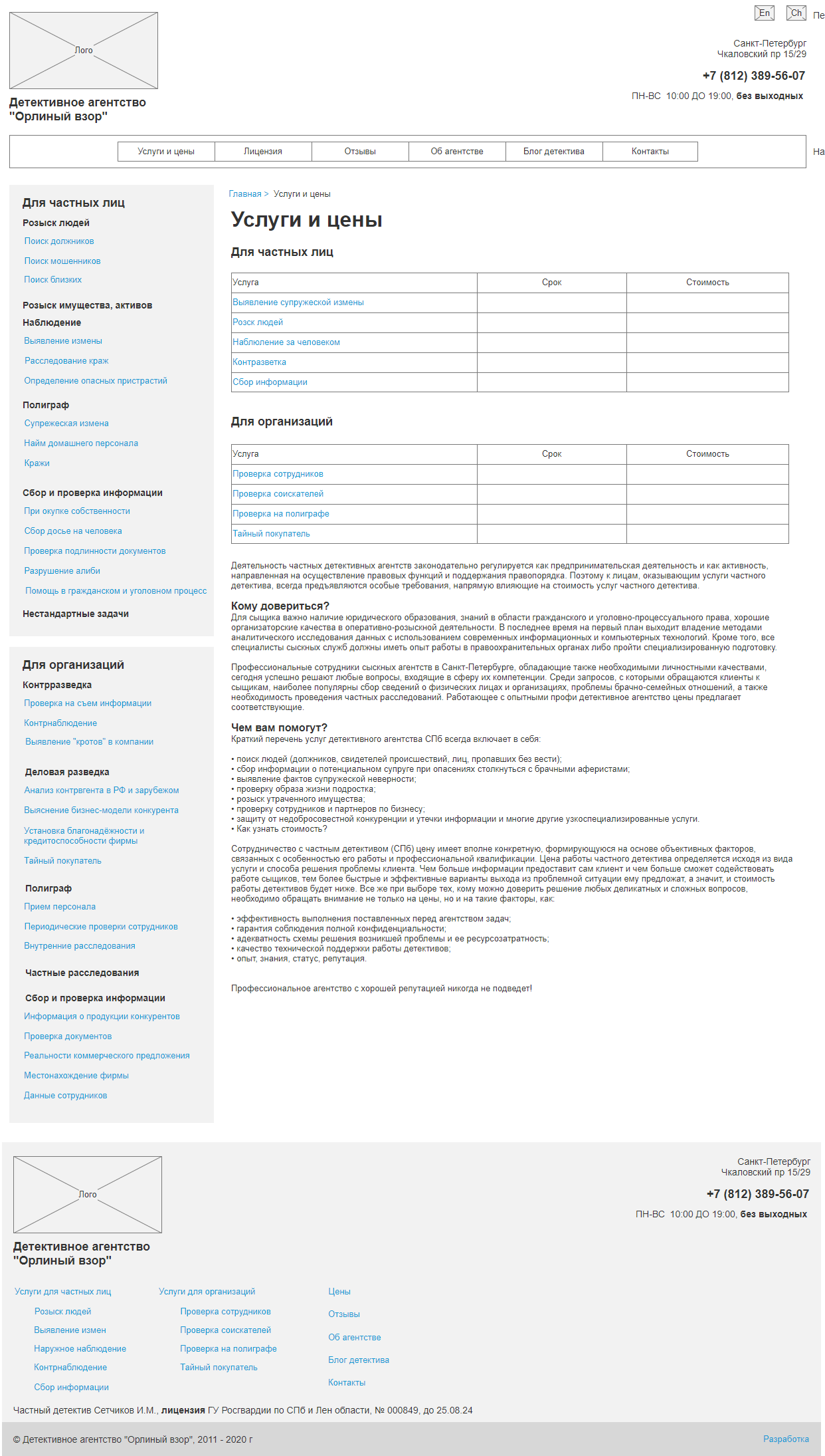 • Расписанные цены на услуги