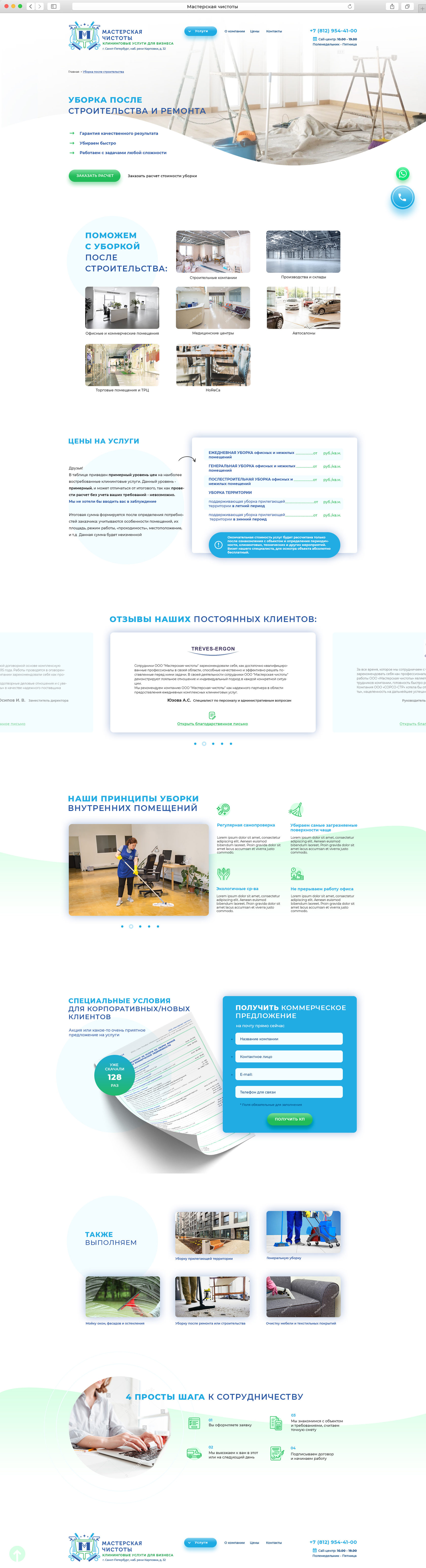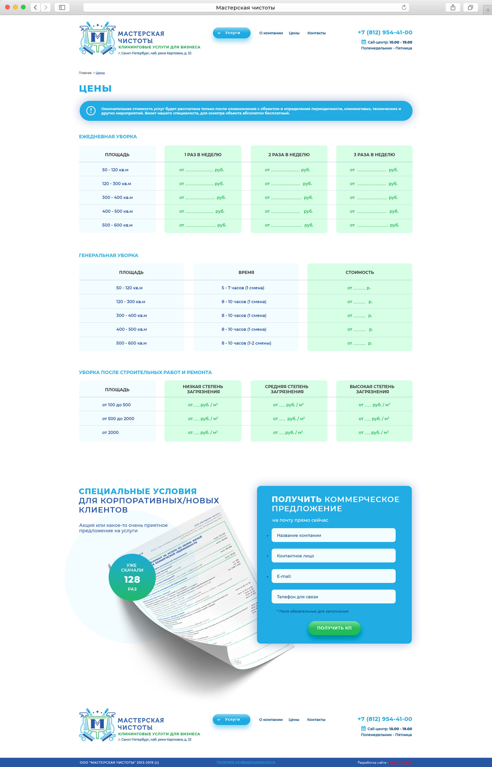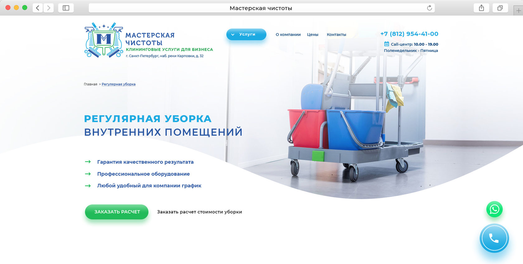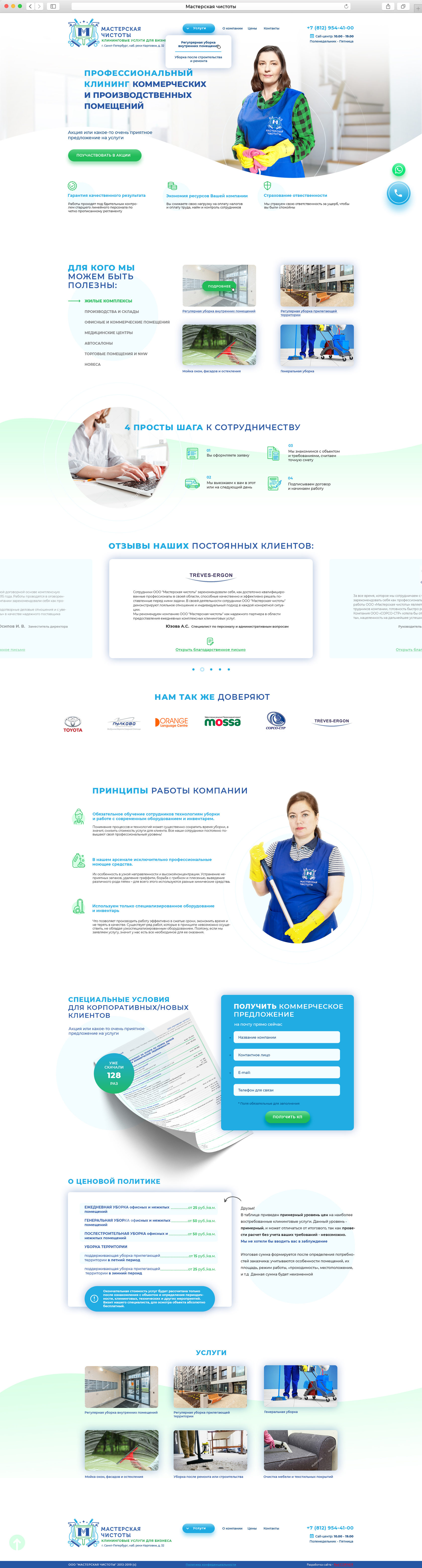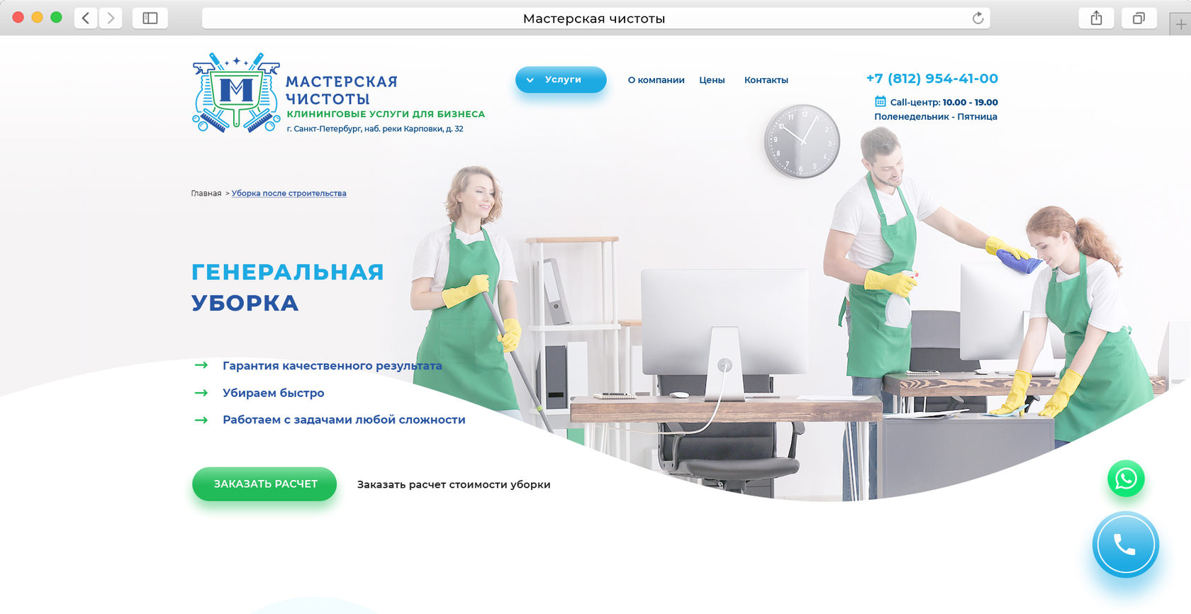 Компания Мастерская Чистоты занимается профессиональными услугами клининга для бизнеса и корпоративных клиентов. Наше сотрудничество началось с разработки брендинга и различных рекламных материалов. Позднее встал вопрос о реконструкции сайта и основной проблемой компании стал недобросовестный исполнитель, сопровождавший сайт на протяжении долгого времени. Предварительно нами была проведена работа по забору всех паролей и передаче прав клиенту.