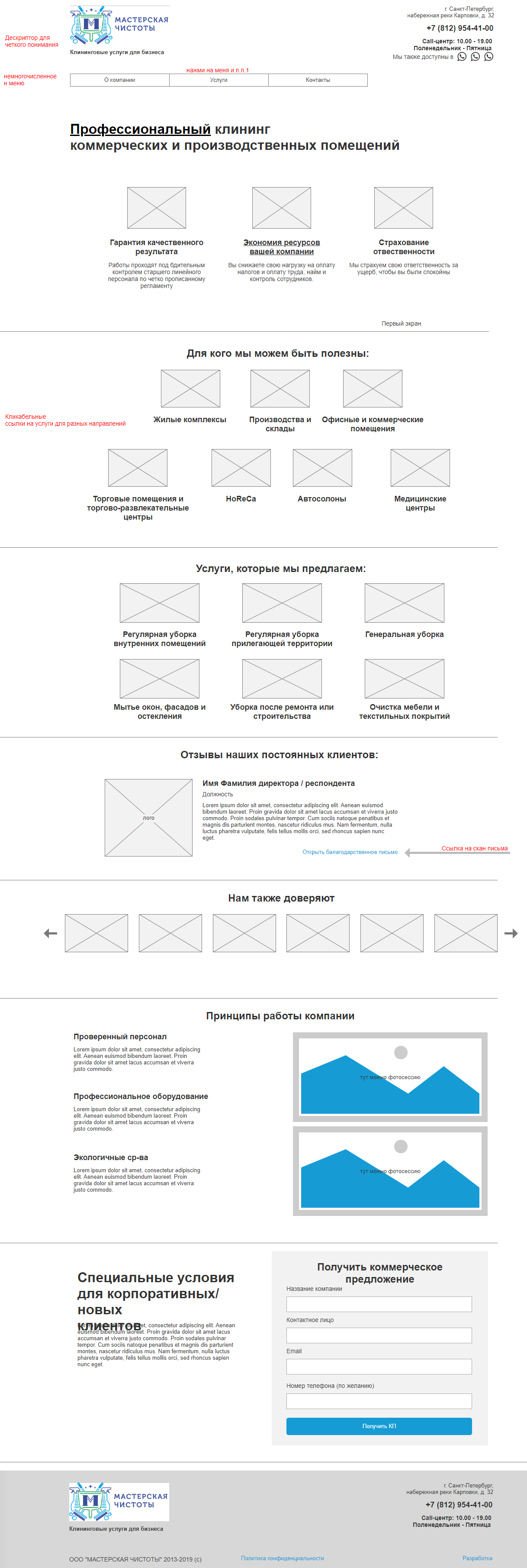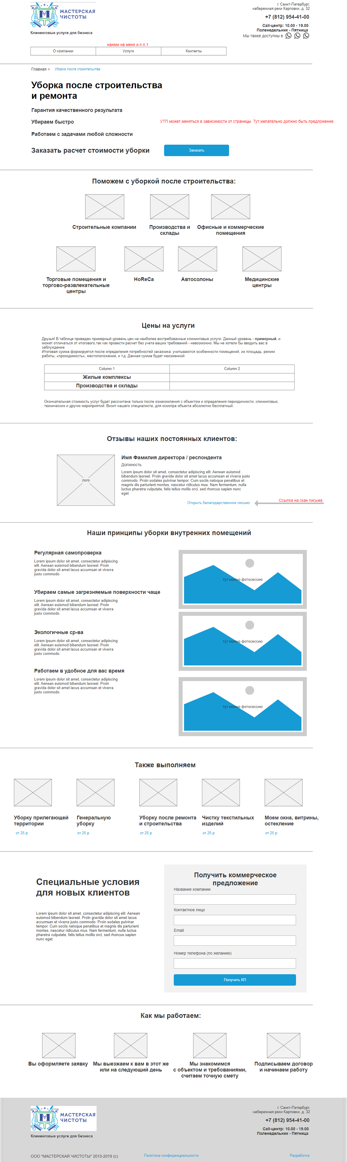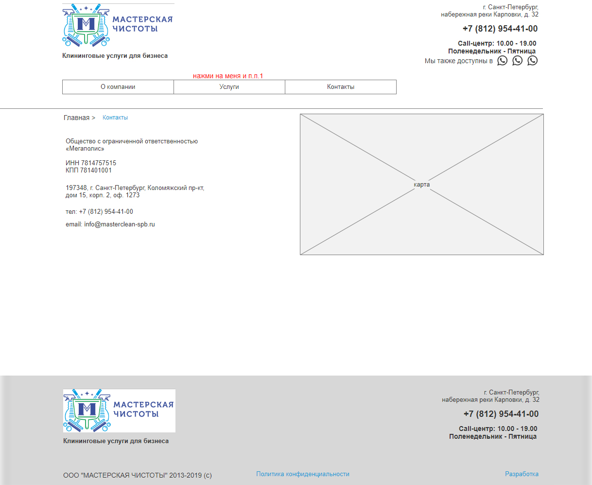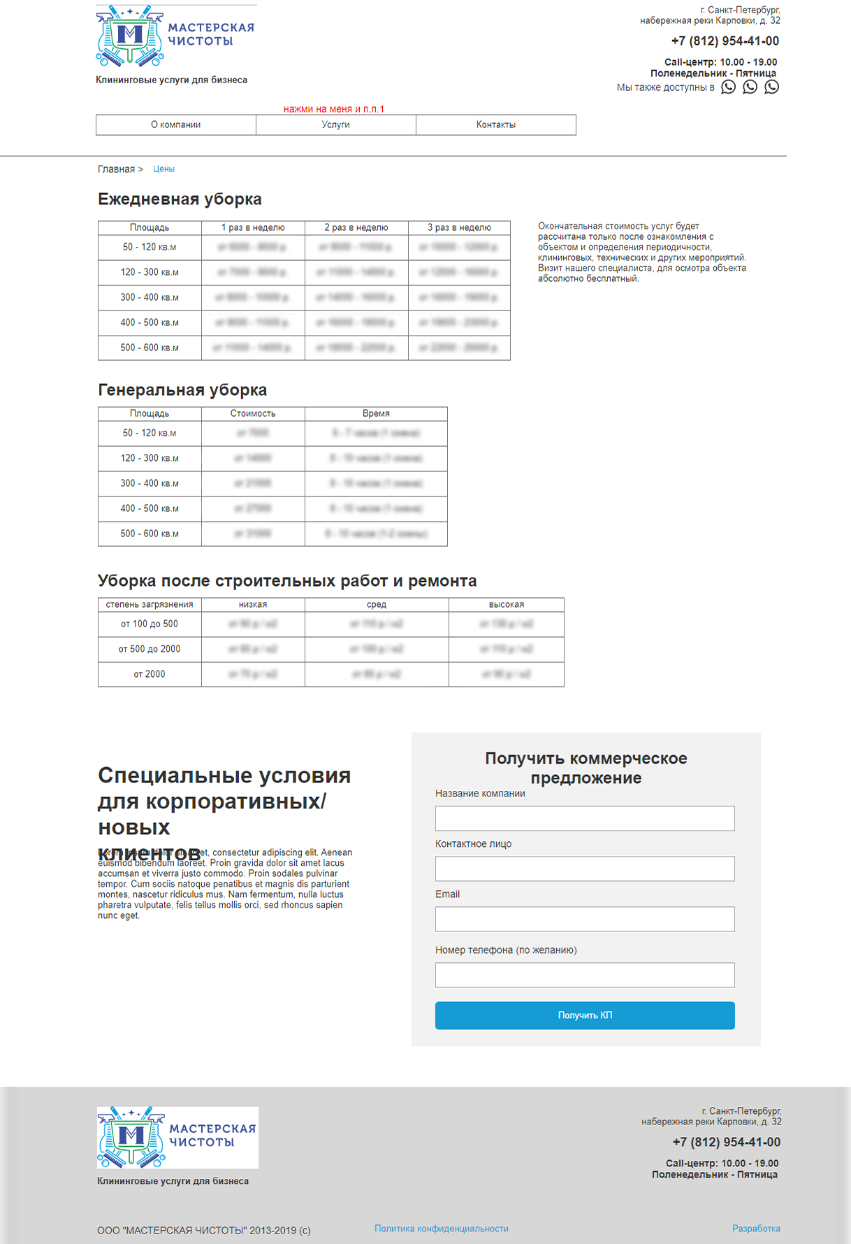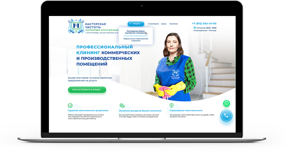 Компания Мастерская Чистоты занимается профессиональными услугами клининга для бизнеса и корпоративных клиентов. Наше сотрудничество началось с разработки брендинга и различных рекламных материалов. Позднее встал вопрос о реконструкции сайта и основной проблемой компании стал недобросовестный исполнитель, сопровождавший сайт на протяжении долгого времени. Предварительно нами была проведена работа по забору всех паролей и передаче прав клиенту.
