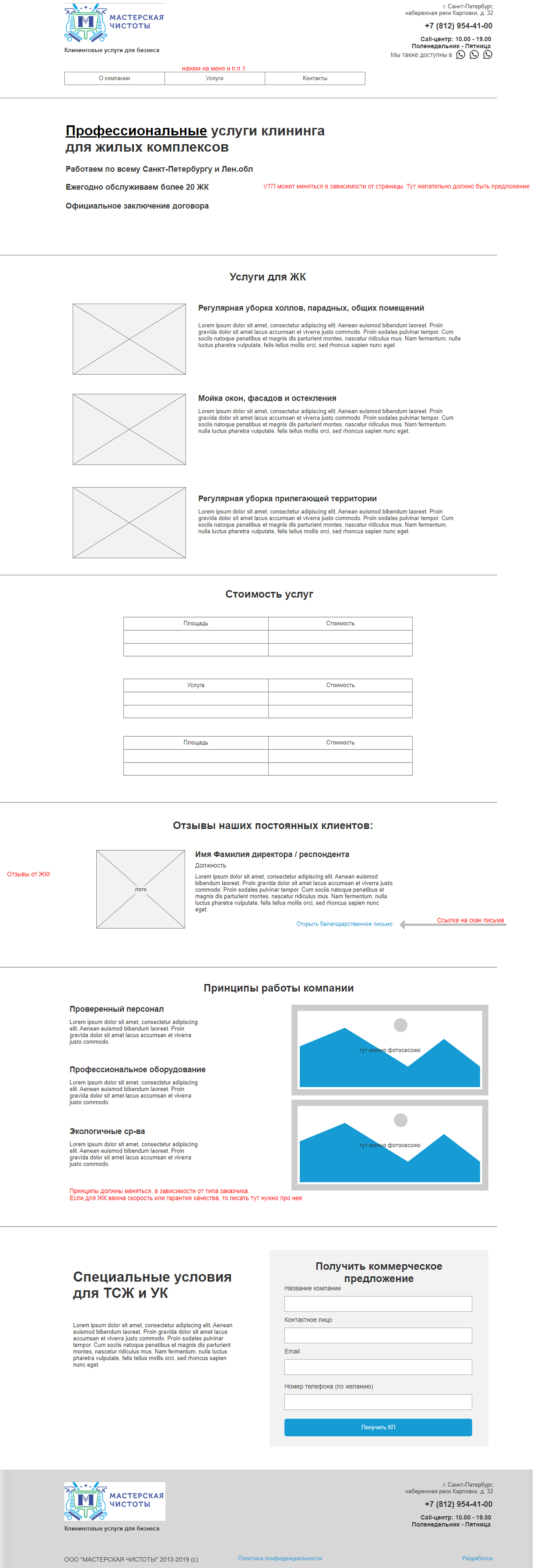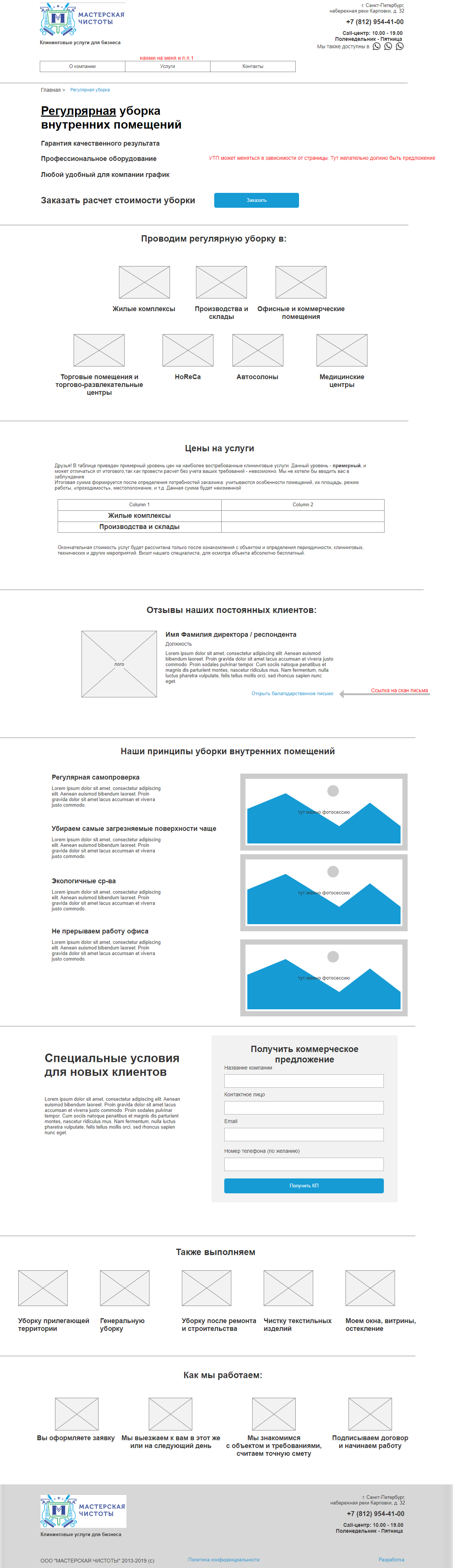 Для каждой услуги разработана своя посадочная страница, состоящая из повторяющихся блоков.