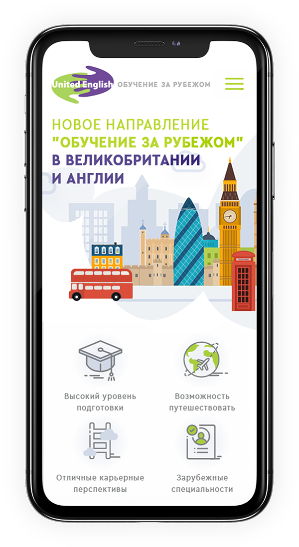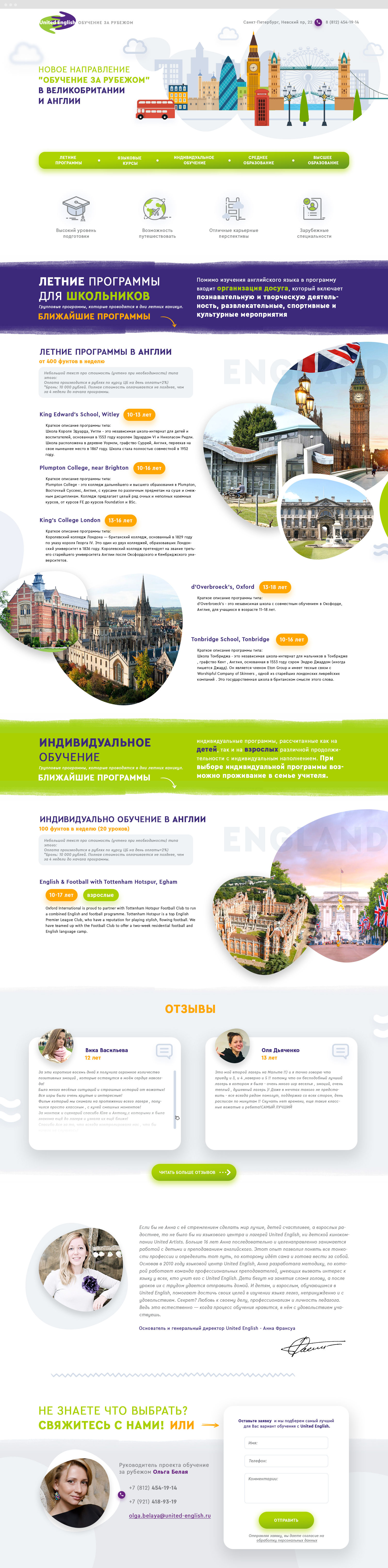 Создать посадочную страницу для нового направления в стиле сайта United English.